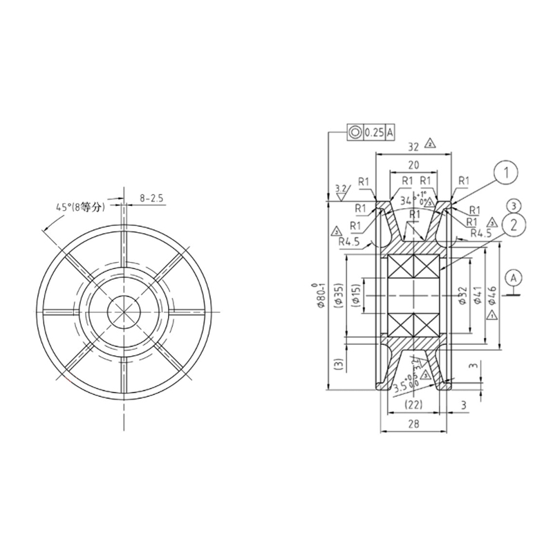 غلتک V شکل از طراحی V شکل استفاده می کند. این طراحی به غلتک اجازه می دهد تا بهتر با ریل راهنما یا تسمه نقاله در سیستم پله برقی تماس پیدا کند و پشتیبانی و هدایت پایدار را فراهم کند. قطر بیرونی آن 80 میلی متر و ارتفاع آن 30 میلی متر است که می توان از آن در کاربردهای مختلف استفاده کرد. الزامات نصب پله برقی و تجهیزات انتقال، سازگاری با تجهیزات موجود را تضمین می کند. مجهز به 6202 بلبرینگ شیار عمیق، می توانند نیازهای استفاده از غلتک های پله برقی را در شرایط کار با سرعت بالا و بار سنگین برآورده کنند. غلتک V شکل از نایلون ساخته شده است که مقاومت خوبی در برابر ضربه و خاصیت خود روانکاری دارد.